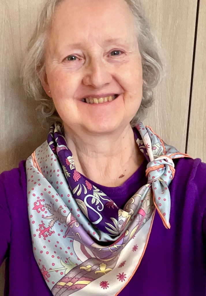 During the weekly session with my counsellor I mentioned that I have an extensive scarf collection and also told her about this blog. So, she has suggested that writing the blog and wearing the scarves could be part of my therapy! I must admit that I love the idea of Scarf Therapy. Anyway, here are the two that I managed to wear this week…