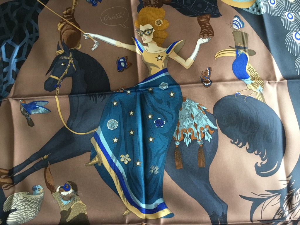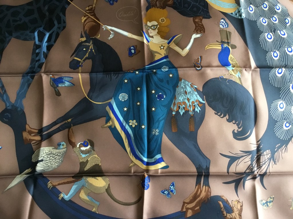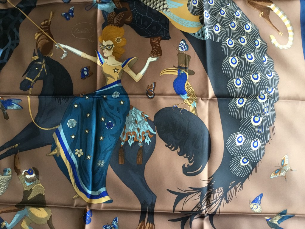 Well, I thought that I had finished with the Spring/Summer 2022 Hermès scarf season when I purchased Le Premier Chant. None of the other scarves had caught my eye or imagination. The colourways didn’t appeal. But then I made the error of looking on The Purse Forum…
